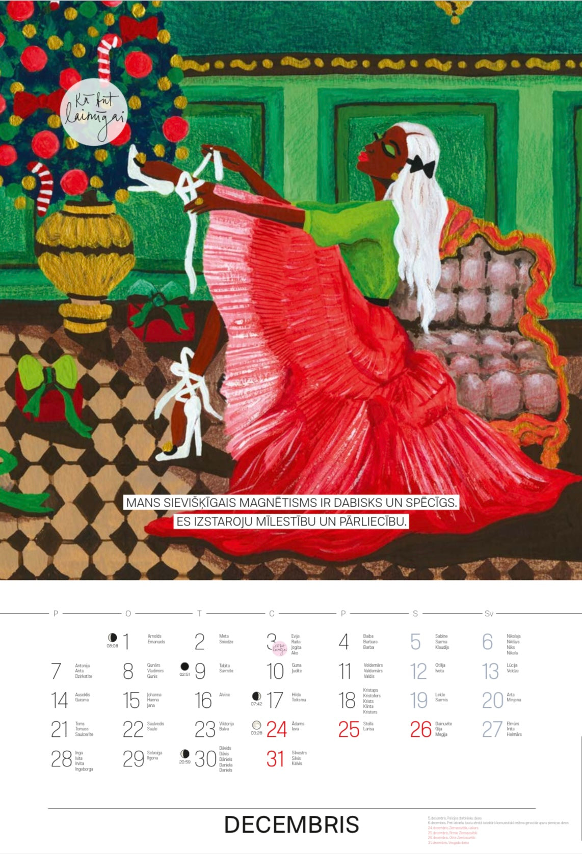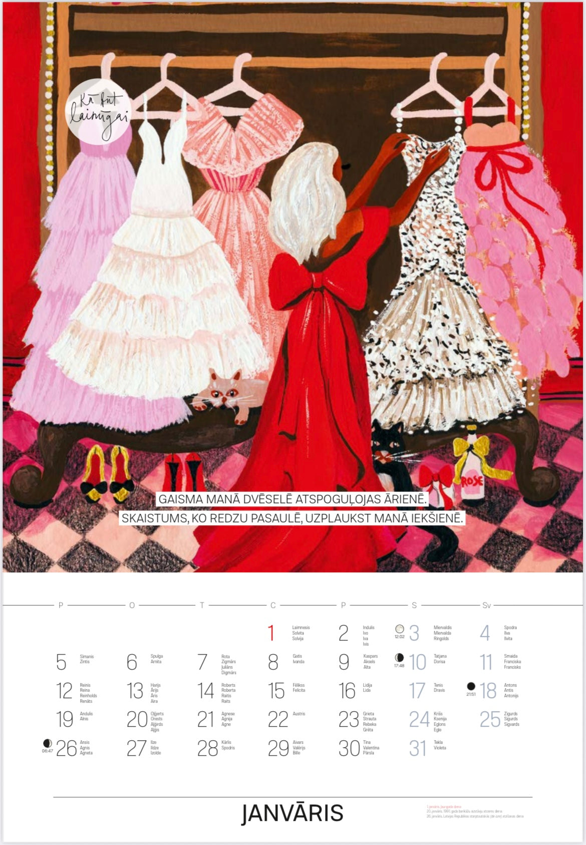 2026. gada kalendāra katru mēnesi rotā Amālijas Andersones mākslas darbi.